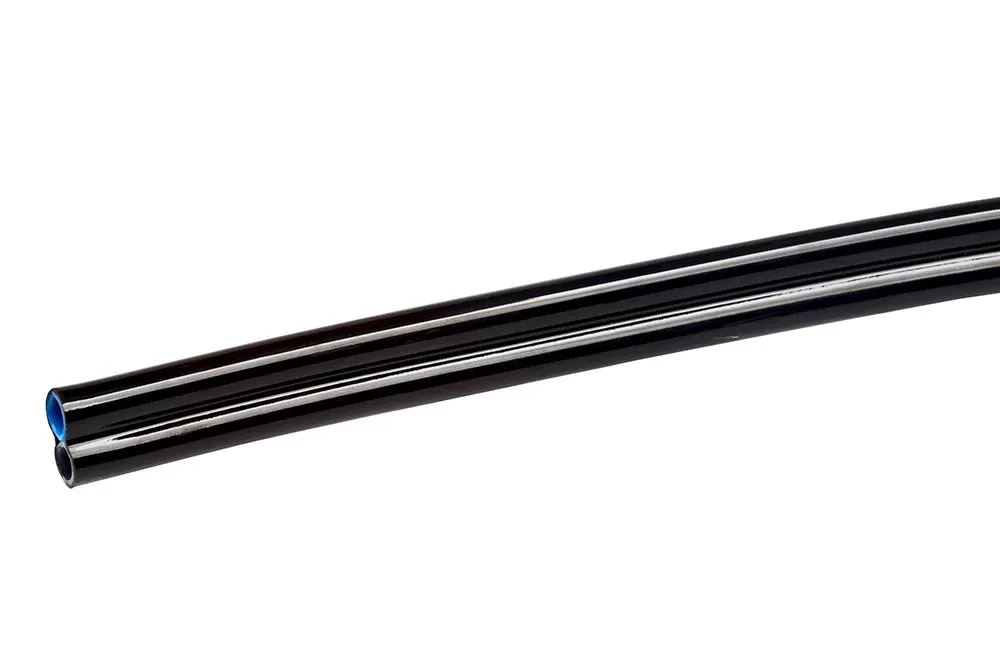 Мультишланг в наружной оболочке из черного полиуретана, предназначенный для пневматических, гидравлических, масляных, топливных установок, смазки и химикатов. Различные цвета шлангов позволяют легко идентифицировать отдельные контуры питания или различные среды. Количество шлангов: 2. Материал шланга: полиамид PA 12 (нейлон). Рабочее давление: от 7,5 бар до 33 бар (в зависимости от диаметра и толщины стенки шланга). Рабочая температура: от -20°C до +80°C (для жидкостей, содержащих воду, до +65°C).