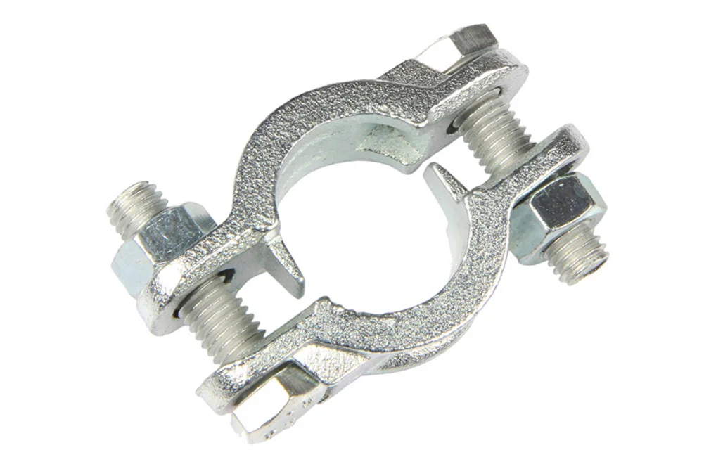 Двухсекционный чугунный хомут для шланга со встроенным язычком