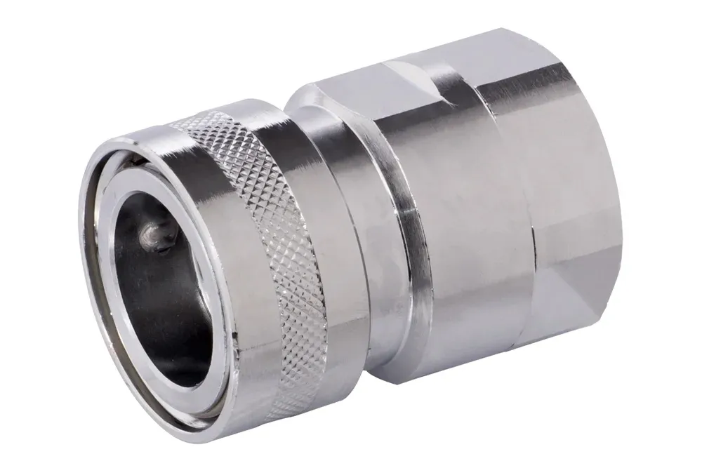 Высококачественное гнездо быстросъемного соединения для воды NiTO 3/4″ с внутренней резьбой и запорным клапаном. Материал: хромированная латунь. Рабочее давление: до 25 бар. Рабочая температура: до +80°C. Уплотнение: NBR (не подходит для бензина и масел). Для клапана уплотнительное кольцо из EPDM.