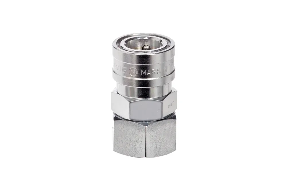 Гнездо быстросъемного соединения с внутренней цилиндрической резьбой BSPT с клапаном, NITTO KOHKI HI CUPLA, углеродистая сталь