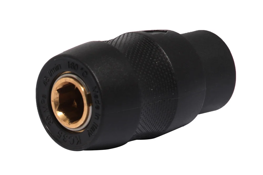 Гнездо KCS быстросъемного соединения без клапана с наружной резьбой BSP для штанг, пистолетов и моечных устройств. Материал: латунь, нержавеющая сталь. Рабочее давление: 350 бар. Рабочая температура: +160°C.