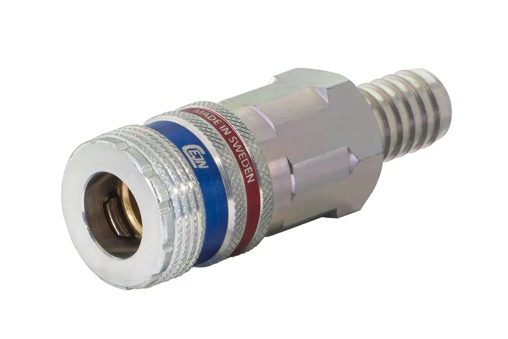 Гнездо пневматического быстросъемного соединения DN10,4 с клапаном, с наконечником для шланга, углеродистая сталь, CEJN 410 ESAFE