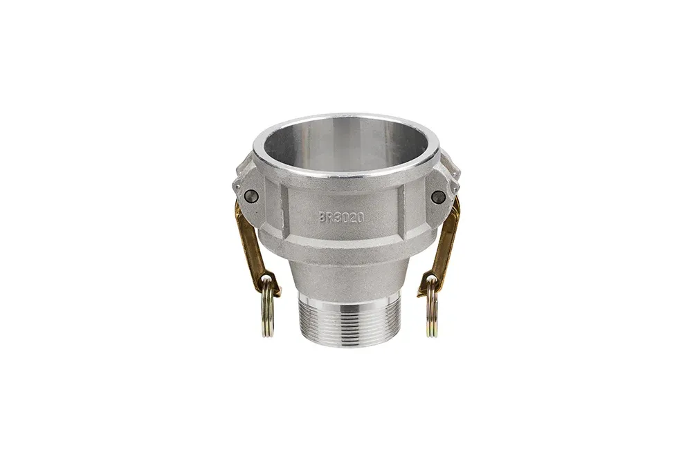 Гнездо соединения CAMLOCK BR (редукционное) с наружной резьбой BSPT, выполненное в соответствии с американским военным стандартом MIL-C-27487 (A-A-59326), широко используется как соединение для перегрузки, особенно в нефтехимической промышленности. Рабочее давление: до 10 бар. Материал: алюминий. Рычаги: сталь AISI 304 (в размерах от 1.1/4″ до 4″ — рычаги из латуни). Уплотнение: NBR.