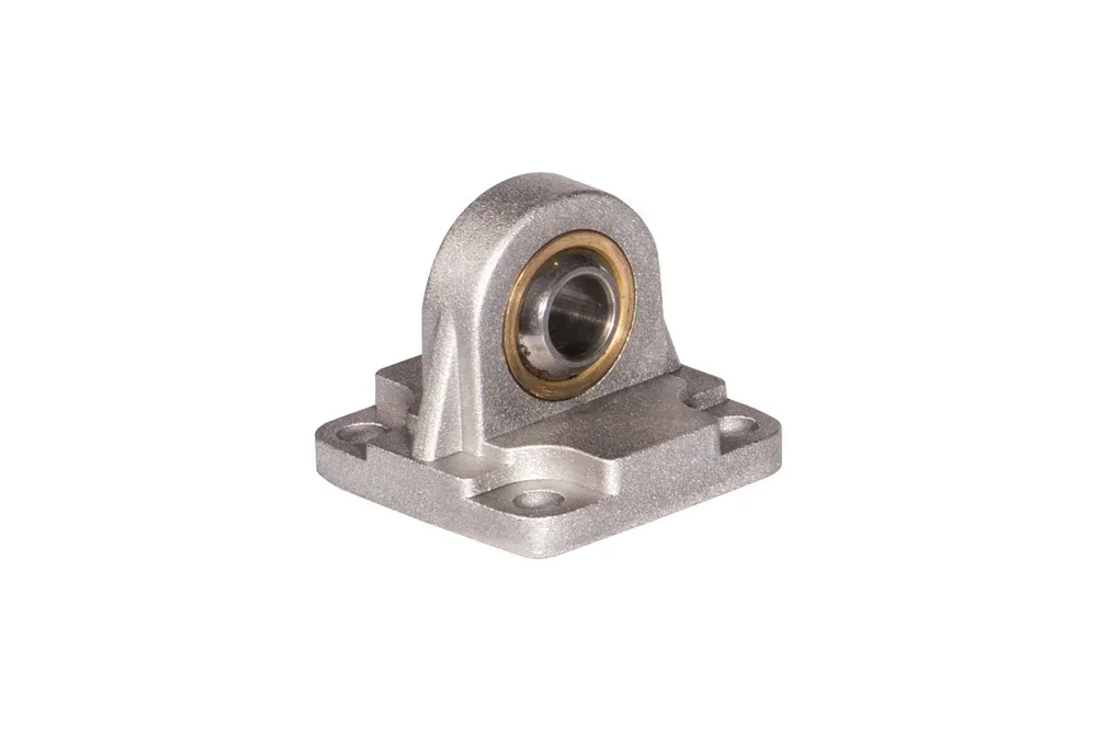 Шарнирный фланец с шаровым соединением для монтажа на задней части крышки цилиндра. В комплекте: 4 винта с шайбами. Материал: литой алюминий (фланец), сталь (шарнир), оцинкованная углеродистая сталь (винты и шайбы).