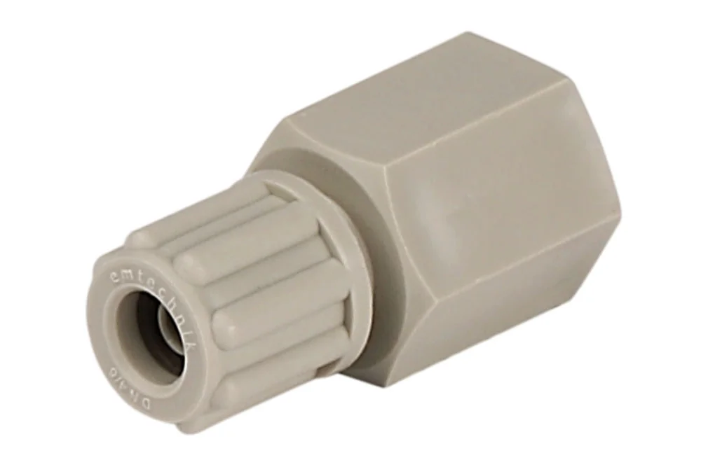 Прямая насадка для шланга с внутренней резьбой BSP серия 1C тип EM, широко используется в лабораториях, медицине, фармацевтической, химической и пищевой промышленности. Монтаж осуществляется путем вставки шланга на интегрированную соединительную втулку. Блокировка происходит с помощью зажимного кольца, выполненного из PEEK, и накатной гайки. Уплотнение обеспечивается уплотнительным кольцом, выполненным из PTFE. Предназначена для гладкостенных неармированных шлангов и трубок из более твердых материалов, например, из PTFE, PFA, FEP, PA, PE. Доступны другие размеры и диаметры насадок и соединителей. Материал: полипропилен, PVDF. Рабочее давление: 10 бар.