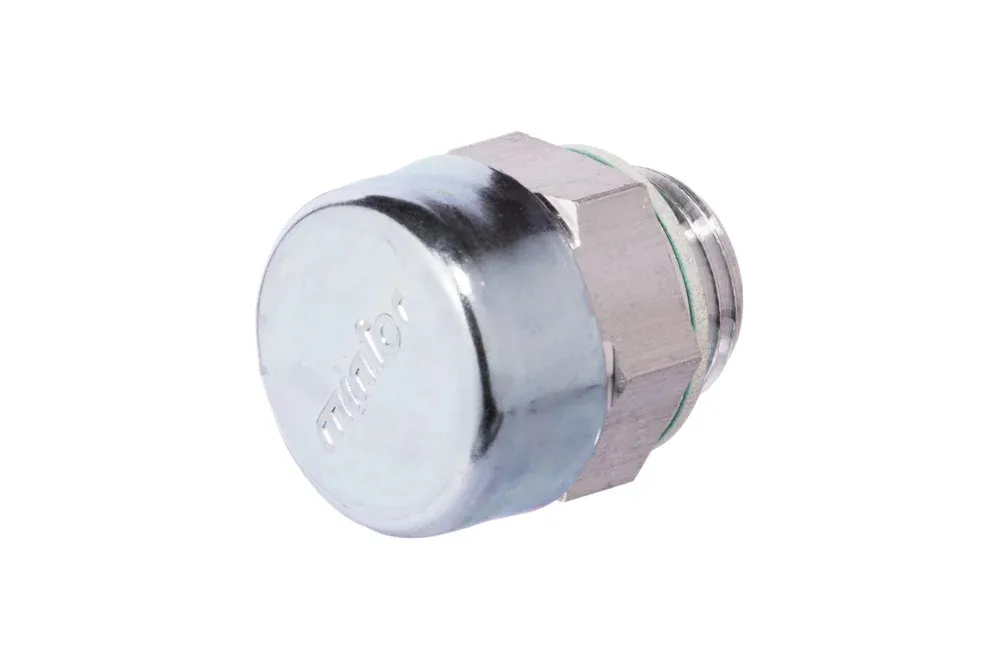 Вентиляционная пробка с обратным клапаном и уплотнительным кольцом, устанавливаемая в верхней части резервуара. Открывается при повышении давления в резервуаре (турбулентность масла). Предотвращает попадание загрязнений в систему при всасывании гидравлического масла. Давление открытия обратного клапана: 0,15 ÷ 0,3 бар. Материал: алюминий (корпус), сталь (кожух), гуарниталь (фибровая прокладка). Рабочая температура: от -20°C до +100°C.