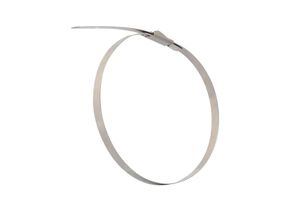 Самозатягивающийся хомут без покрытия предназначен для легкой и простой ручной установки или с использованием инструмента для натяжения и обрезки (индекс: BD-KE9229). Обладает высокой стойкостью к огню, коррозии, ультрафиолетовому излучению, а также высоким и низким температурам. Материал: сталь AISI 316.