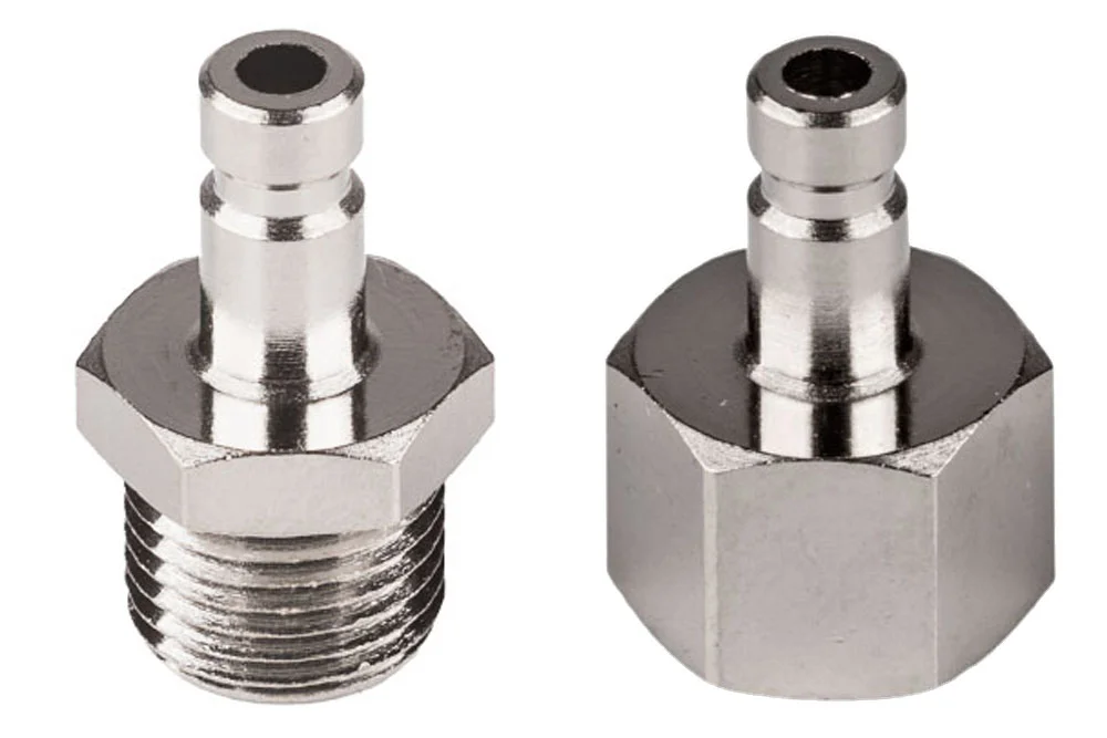 Миниатюрный штекер быстросъемного соединения для воздуха DN2,7, с резьбой, никелированная латунь, 16 бар