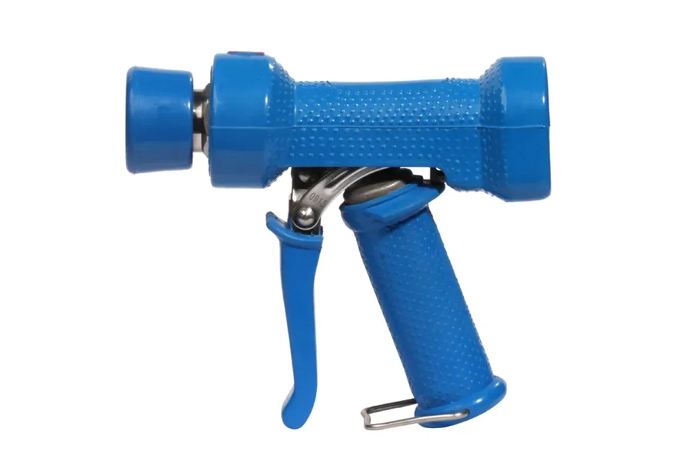 Пистолет для пены и распыления для монтажа штанг и форсунок (на выходе с гнездом быстросъемного соединения DN11,8). Обладает плавной регулировкой потока и блокировкой спускового крючка (изоляция на спуске). Автоматическое закрытие потока при отпускании спуска. Материал: сталь AISI 316. Спуск из нержавеющей стали. Защита из синей резины EPDM. Уплотнение: витон. Подключение (вход): GW 1/2″ BSP. Максимальное рабочее давление: 24 бар. Максимальная рабочая температура: +95°C.