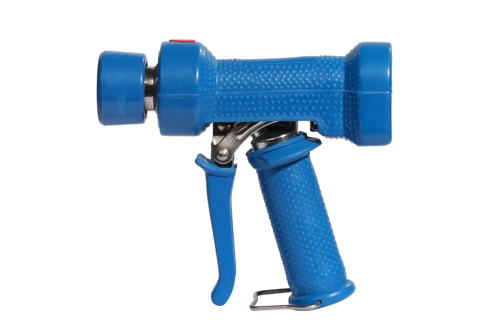 Пистолет для пены и распыления для монтажа штанг и форсунок (на выходе гнездо быстросъемного соединения DN11,8). Обладает плавной регулировкой потока и блокировкой спускового крючка (изоляция на спуске). Автоматическое закрытие потока при отпускании спуска. Материал: хромированная латунь. Спуск из нержавеющей стали. Защита из синей резины EPDM. Уплотнение: EPDM. Подключение (вход): внутренняя резьба 1/2″ BSP. Максимальное рабочее давление: 24 бар. Максимальная рабочая температура: +95°C.