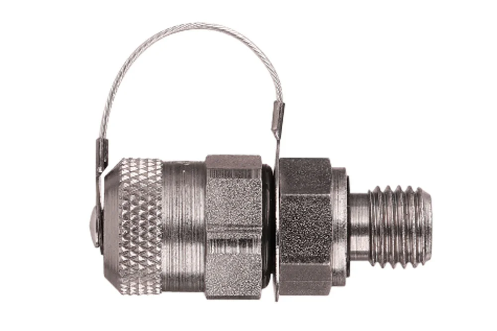 Измерительное соединение M16x1,5 (военный стандарт) с металлической заглушкой и с наружной резьбой BSP для подключения к гидравлической системе. Материал: сталь с цинк-никелевым покрытием. Уплотнение: NBR. Рабочее давление: 630 бар. Рабочая температура: от -30°C до +120°C.