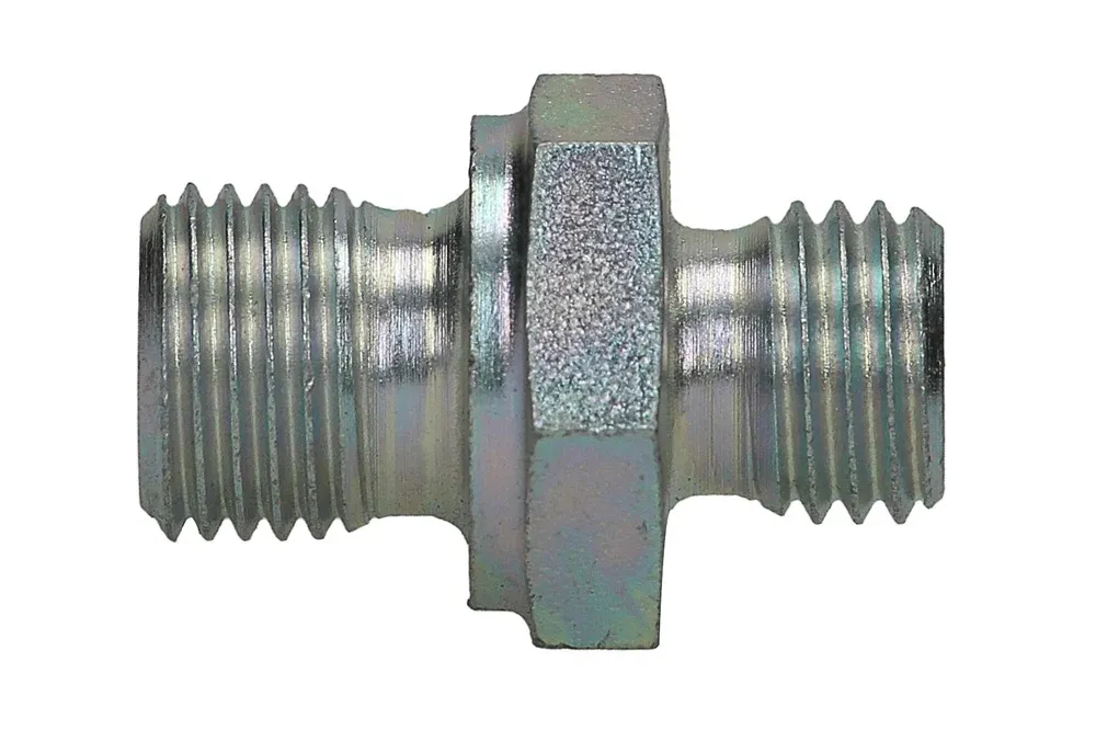 Присоединительная деталь DIN 2353 резьбовая, тип GE-BB: седло 24° DIN 2353 с метрической наружной резьбой и с наружной резьбой BSP (уплотнение DIN 3852 тип B – металл к металлу). Коэффициент безопасности 2,5:1. Выпускается в вариантах: L (легкая серия), S (тяжелая серия). Материал: углеродистая сталь, оцинкованная.