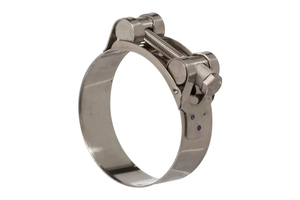 Мощный хомут с шарнирным замком для больших нагрузок характеризуется прочной конструкцией и двумя полными штифтами. Рекомендуется для герметичных соединений толстостенных, армированных промышленных шлангов. Хомут изготовлен из высококачественной стальной ленты шириной от 18 мм до 26 мм. Загнутые края ленты предотвращают повреждение поверхности шланга, на которой работает хомут. На ленте хомута указаны минимальный и максимальный диаметр, а также материал, из которого он изготовлен. Благодаря шестигранной головке винта возможно использование широко распространенных инструментов, таких как гаечные ключи, торцевые ключи, разводные ключи. Материал: все элементы изготовлены из нержавеющей стали AISI 316.
