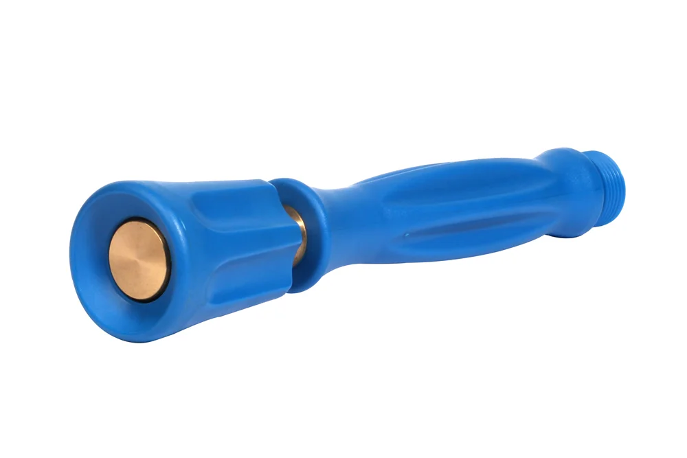 Легкий, эргономичный ствол с плавной регулировкой потока путем вращения головки (закрыто — узкий поток — широкий поток). Сопло из латуни, головка и рукоятка из синего полипропилена. Подключение: GZ 3/4″ BSP. Рабочее давление: до 16 бар. Рабочая температура: до +50°C. Поток: 110 л/мин (5 бар), 150 л/мин (16 бар). Длина: 239 мм.