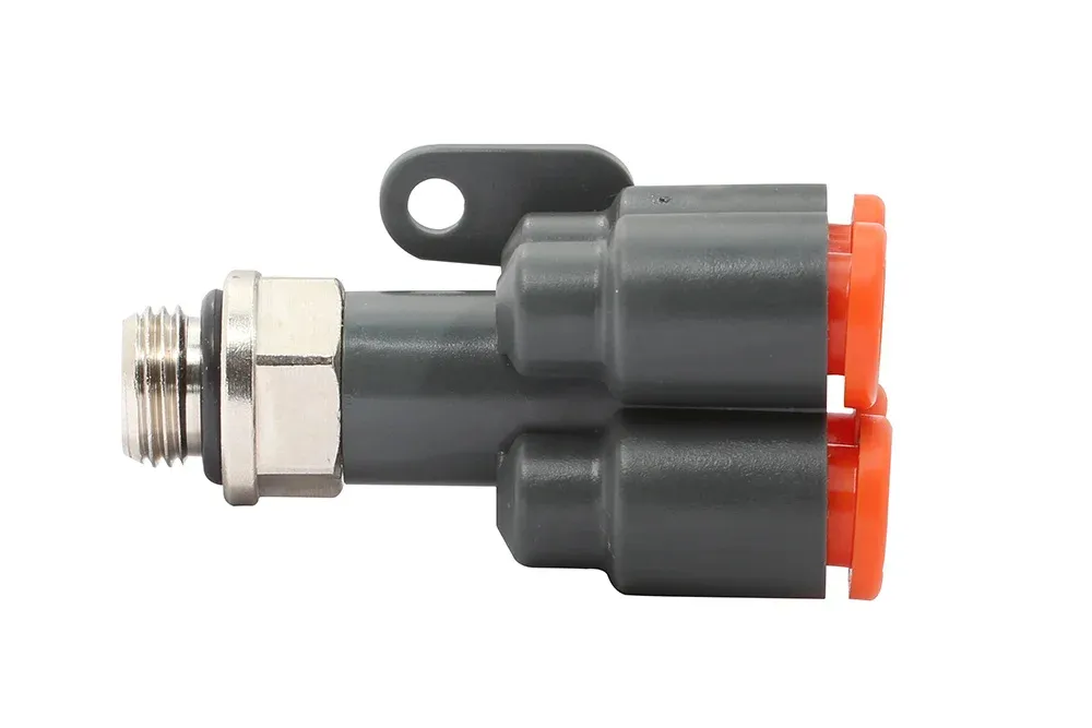 Регулируемый штекерный распределитель, тип R43, предназначен для соединения трубопроводов и других элементов в пневматических системах. Легкий и быстрый в использовании для многократной сборки без потери герметичности с механической и пневматической стороны. Материал: пластик. Рабочее давление: 12 бар. Рабочая среда: вакуум, воздух. Рабочая температура: от -20°C до +60°C. Уплотнение: NBR.