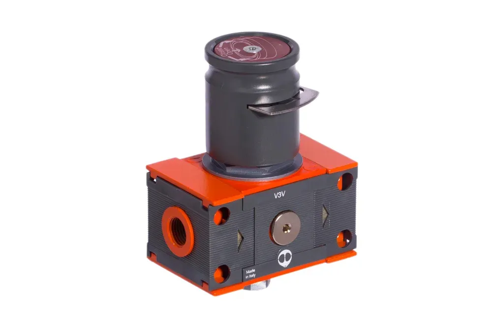 Ручной запорный клапан V3V с блокировкой, серия SKILLAIR®, с концевыми пластинами. Его задача заключается в отделении рабочей системы от питающего воздуха. Это нормально закрытый, трехходовой клапан. В закрытом положении он перекрывает питающий воздух, одновременно стравливая давление из системы, что делает его особенно полезным при проведении сервисных работ. В состоянии покоя (закрытом) может быть закрыт на замок, что защищает клапан от включения посторонними лицами. Размер: 100, 200, 300. Питающее давление: до 15 бар (в зависимости от размера). Рабочая температура: до +50°C. Номинальный расход: в зависимости от размера до 4700 л/мин (при входном давлении 6 бар Δp = 1 бар).