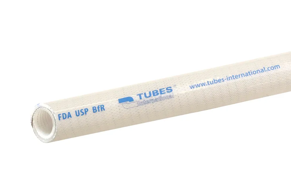 Всасывающе-нагнетательный шланг, изготовленный по технологии улучшения платиной, устойчивый к УФ-излучению и озону. Соответствует требованиям 1935/2004 CE, FDA 21 CFR 177.2600, USP кл. VI, Европейской Фармакопеи 3.1.9, BfR XV, Journal Officiel Brochure 1227. При рабочей температуре выше +100°C максимальное рабочее давление, указанное в таблицах, следует снижать на 1% на каждый 1°C повышения температуры. Коэффициент безопасности составляет 4:1. Внутренний слой: полупрозрачный силикон. Усиление: четыре полиэфирные оплетки, стальная спираль (AISI 316). Внешний слой: полупрозрачный силикон. Рабочая температура: от -60°C до +180°C.