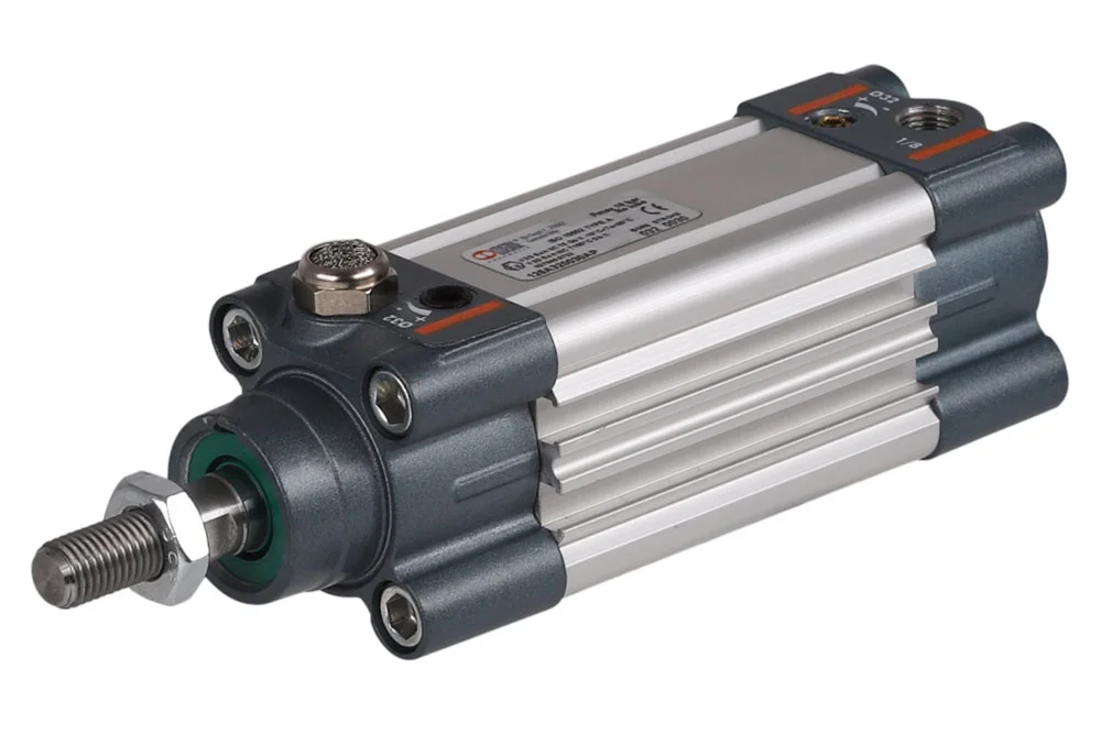 Односторонний цилиндр ISO 15552 тип A, имеет крышку, выполненную из высоконапорного алюминиевого литья, и профиль, изготовленный из анодированного, калиброванного алюминия, который содержит на трех стенках продольные канавки, позволяющие непосредственный монтаж и защиту датчиков положения поршня. Эти же канавки служат для непосредственного монтажа клапанов и других механических частей. Диаметр поршня: Ø 32 ÷ 63 мм. Рабочий ход: от 30 до 200 мм. Рабочее давление: от 0,4 до 10 бар. Уплотнение: полиуретан. Рабочая температура: от -10°C до +80°C.