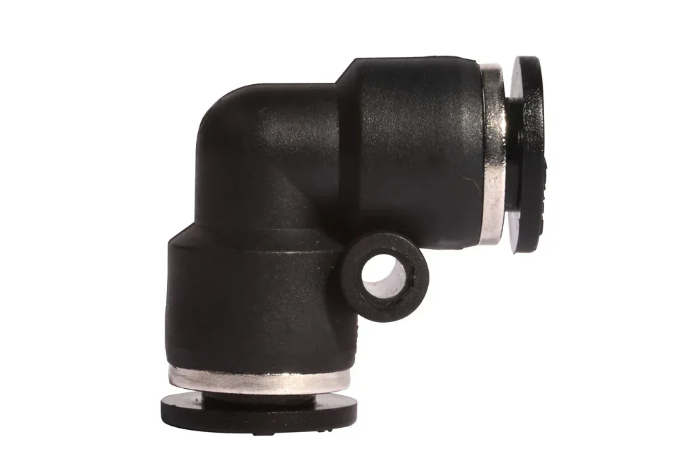 Угловое штекерное соединение 90° с штекерными соединениями для шланга с дюймовым диаметром, серия S, тип PULC. Экономичное решение для соединения гибких пневматических шлангов с дюймовым калиброванным внешним диаметром. Легкое и быстрое в использовании. Материал: пластик. Рабочее давление: 10 бар. Вакуум: 0,99 бар. Рабочая температура: от 0°C до +60°C. Уплотнение: NBR.