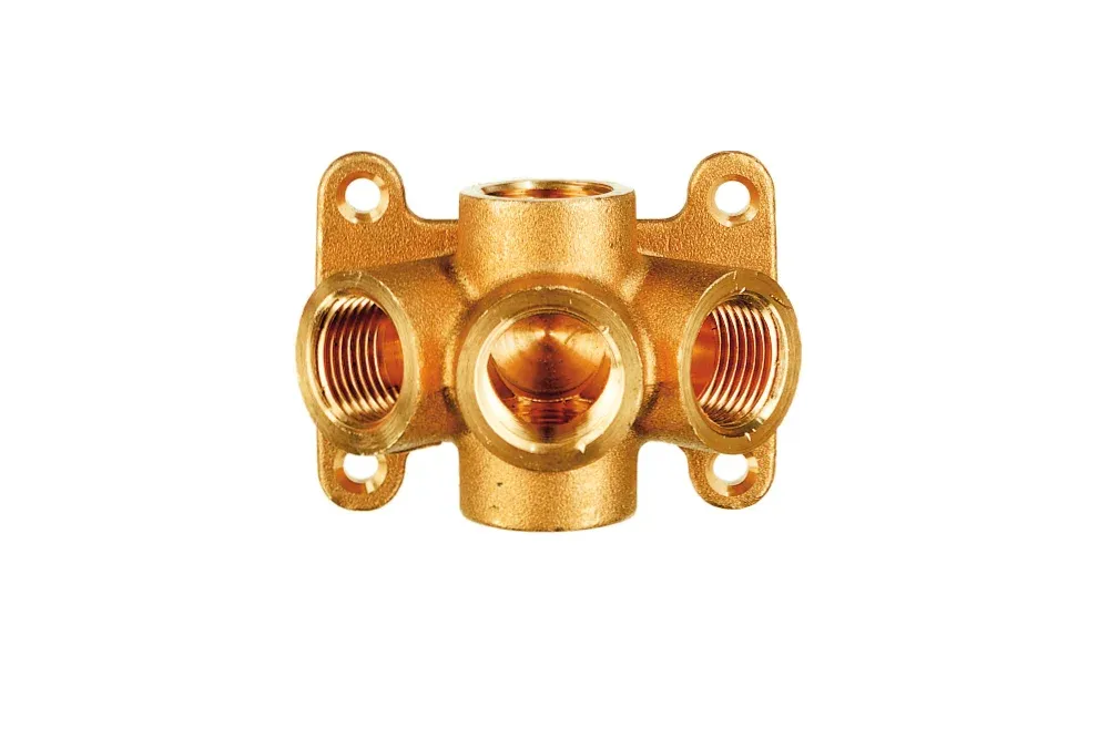 Угловой распределитель с внутренними резьбами BSP с креплением для распределения воздуха. Материал: латунь. Рабочее давление: до 63 бар. Рабочая температура: от -10°C до +90°C.