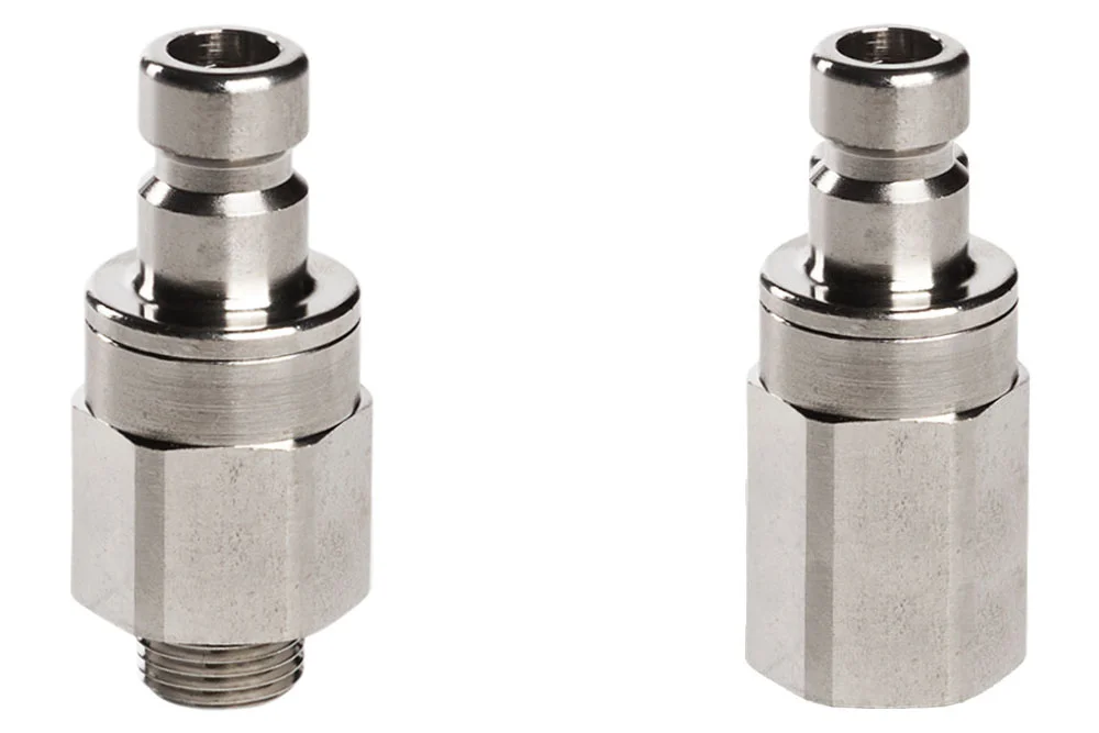 Штекер быстросъемного соединения DN12, двусторонне запирающий, с резьбой, никелированная латунь, серия 57KB
