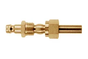 Штекер быстросъемного соединения DYROS серия 6 с наконечником под обжимное кольцо без клапана. Предназначен для охлаждающих жидкостей форм в переработке пластмасс, систем сжатого воздуха, баллонов с техническими газами и других областей техники. Материал: латунь. Рабочее давление: 15 бар.