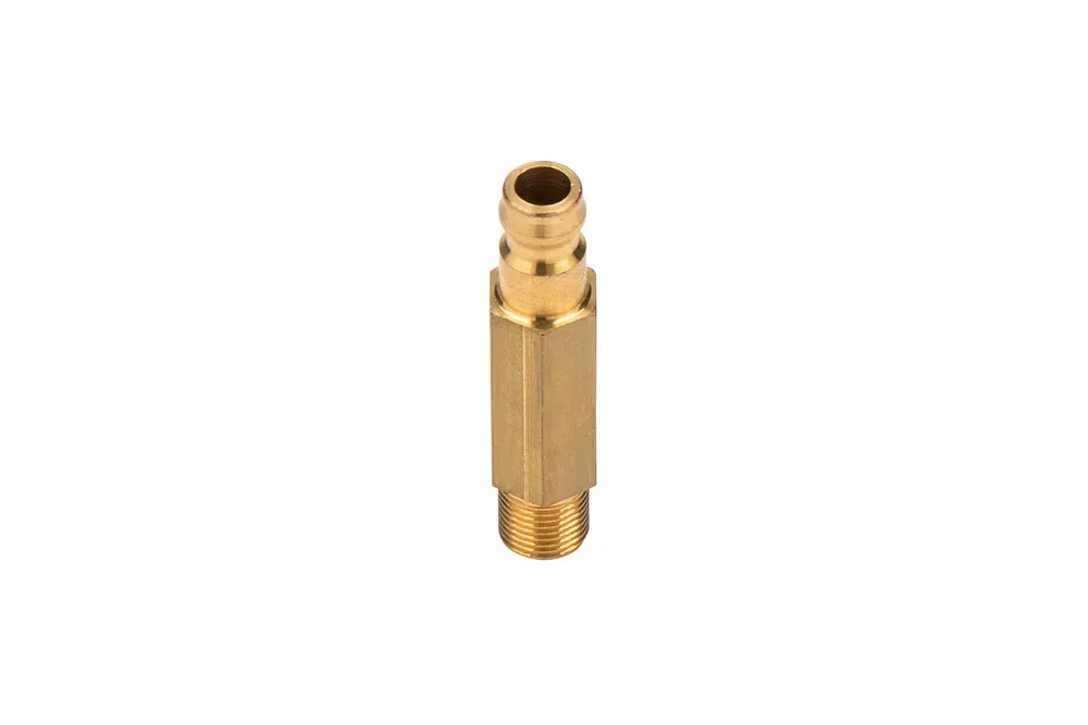 Штекер быстросъемного соединения DYROS серии 6 длиной 50 мм с наружной резьбой без клапана. Доступен с метрической резьбой или BSP. Предназначен для охлаждающих жидкостей в формах при переработке пластмасс, систем сжатого воздуха, баллонов с техническими газами и других областей техники. Материал: латунь. Рабочее давление: 15 бар.