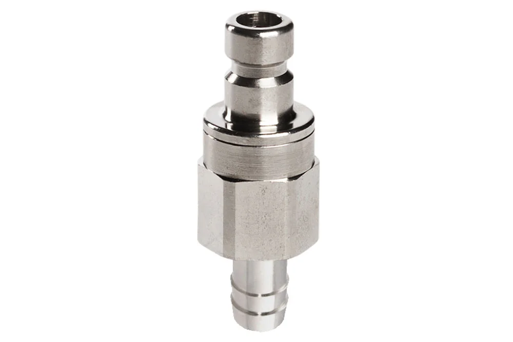 Штекер быстросъемного соединения DN12 с двухсторонним отсечением, с наконечником для шланга, никелированная латунь, серия 57KB