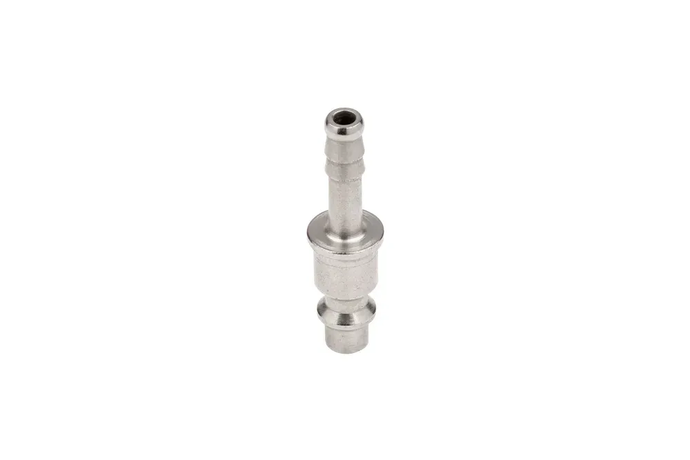 Штекер быстросъемного соединения без клапана, DN5,5 с профилем, соответствующим стандарту ISO 6150B (A-A-59439, MIL C-4109), серия 1400KA / 1423KA, с наконечником для шланга. Высококачественный штекер, широко используемый в промышленности, прежде всего для сжатого воздуха. Рабочее давление: 35 бар. Материал: закаленная сталь, никелированная. Рабочая температура: от -20°C до +100°C.