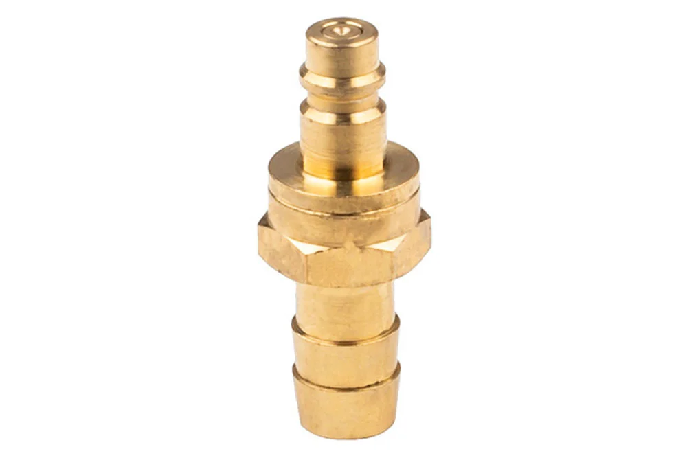 Штекер быстросъемного соединения с двусторонним отсечением, популярного профиля Eurostandard DN7,2 с клапаном, с наконечником для шланга, для использования в пневматических установках (воздух, азот, другие негорючие газы). Версия с двусторонним отсечением, имеет клапан в гнезде и в штекере, и не следует соединять версию с односторонним отсечением с двусторонним, так как не произойдет открытие клапана. Легко управляется одной рукой при давлении до 8 бар. Рабочее давление: 16 бар. Материал: латунь (пружина из нержавеющей стали). Уплотнение: NBR. Поток: 734 л/мин, Pe=6 бар, Δp=1 бар (воздух). Рабочая температура: от -20°C до +100°C.