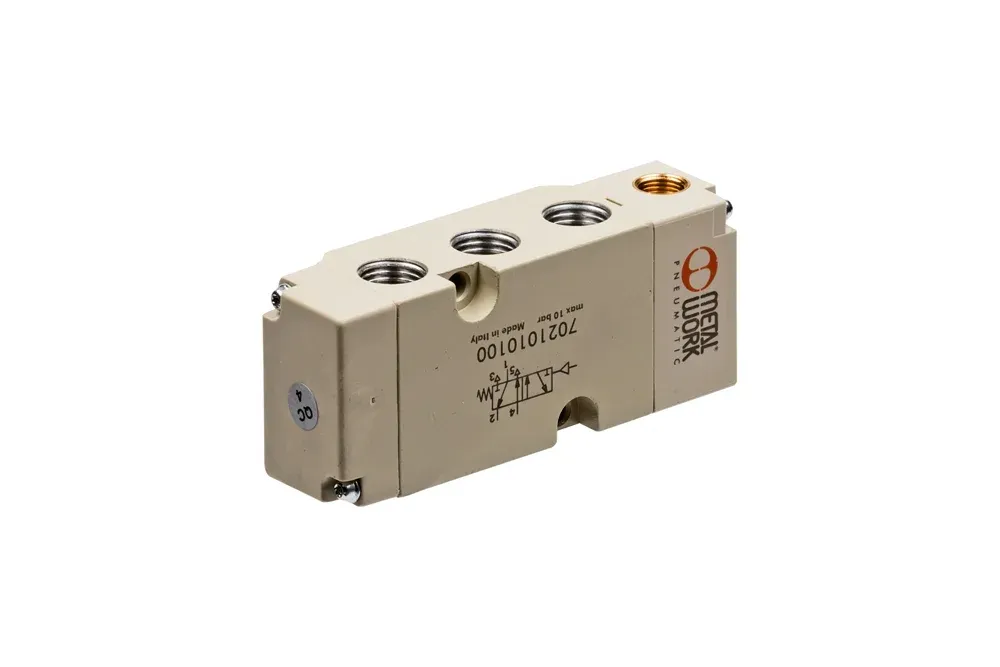 Пневматически управляемый клапан с подключением NAMUR предназначен для управления пневматическими приводами. Их подключение позволяет устанавливать клапаны непосредственно на корпусе цилиндров. Функция 5/2 — пятиходовой, двухпозиционный. Материал: корпус клапана — алюминий, золотник — никелированный алюминий, уплотнение — NBR, крышка — Hostaform®. Минимальное давление питания пилотов: 2,5 бар. Рабочая температура: от -10°C до +60°C. Номинальный расход: 1100 л/мин (при входном давлении 6 бар Δp = 1 бар).