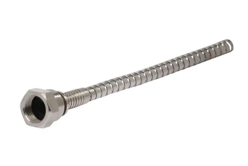 Выберите параметры Этот товар имеет несколько вариаций. Опции можно выбрать на странице товара. / ДеталиКонцевая деталь AK с внутренней резьбой BSP и пружиной против перегиба длиной 200 мм. Предназначена для монтажа в промышленных шлангах, в частности в шлангах для мойки в месте соединения с водяным пистолетом, где из-за манипуляций с пистолетом требуется изгиб шланга. Пружина обеспечивает дополнительную защиту шланга. Материал: сталь AISI 316. Рабочее давление: до 40 бар. -